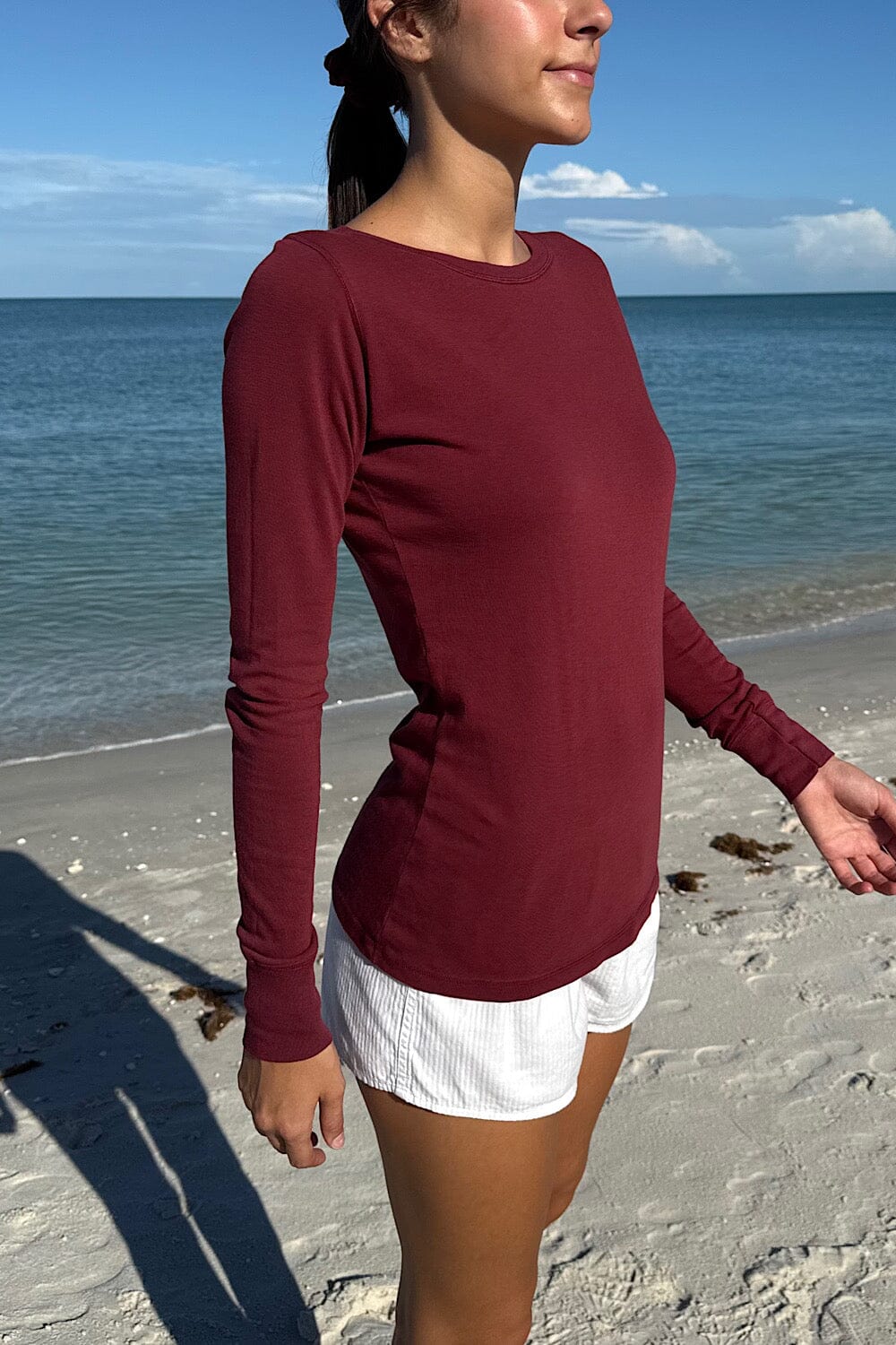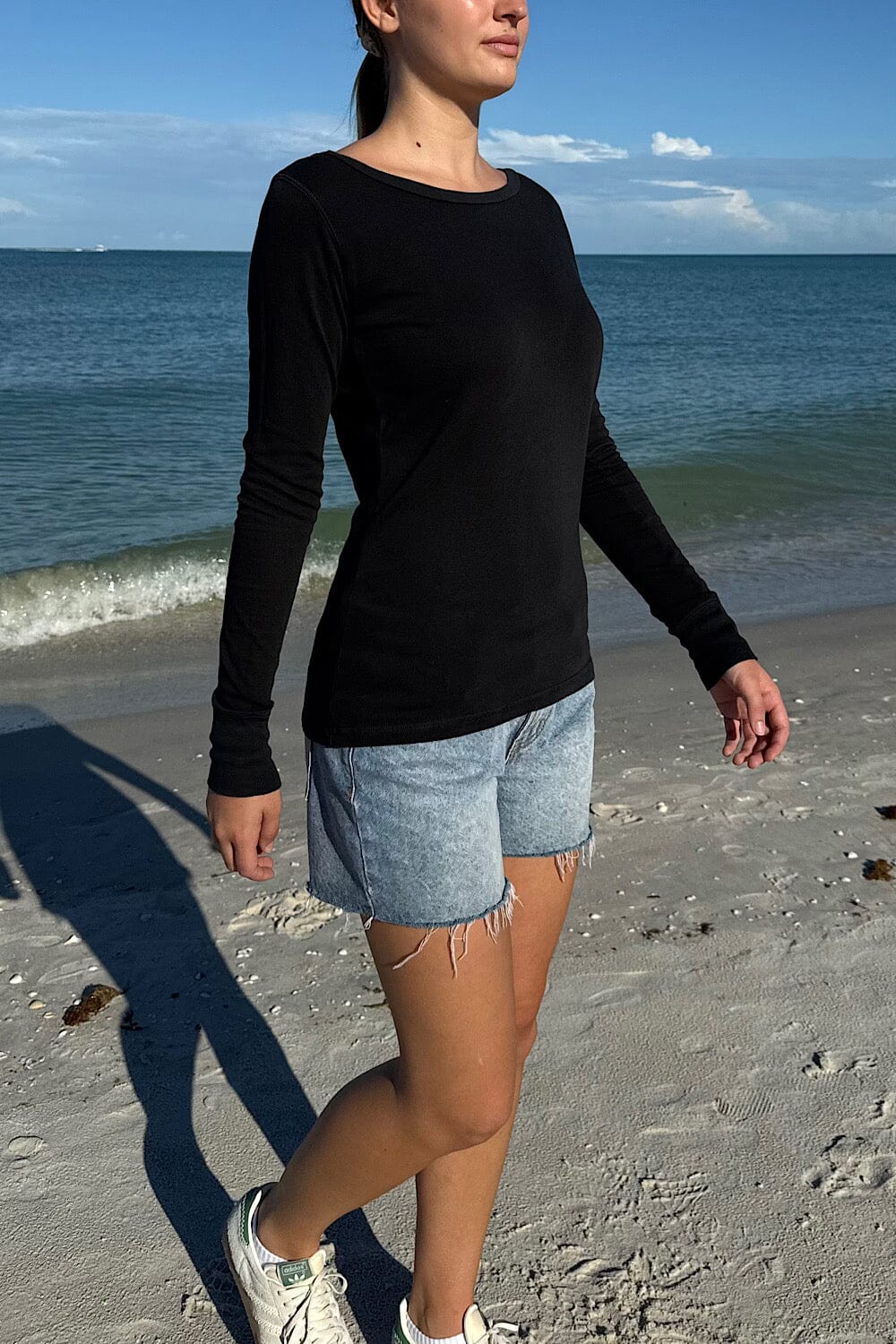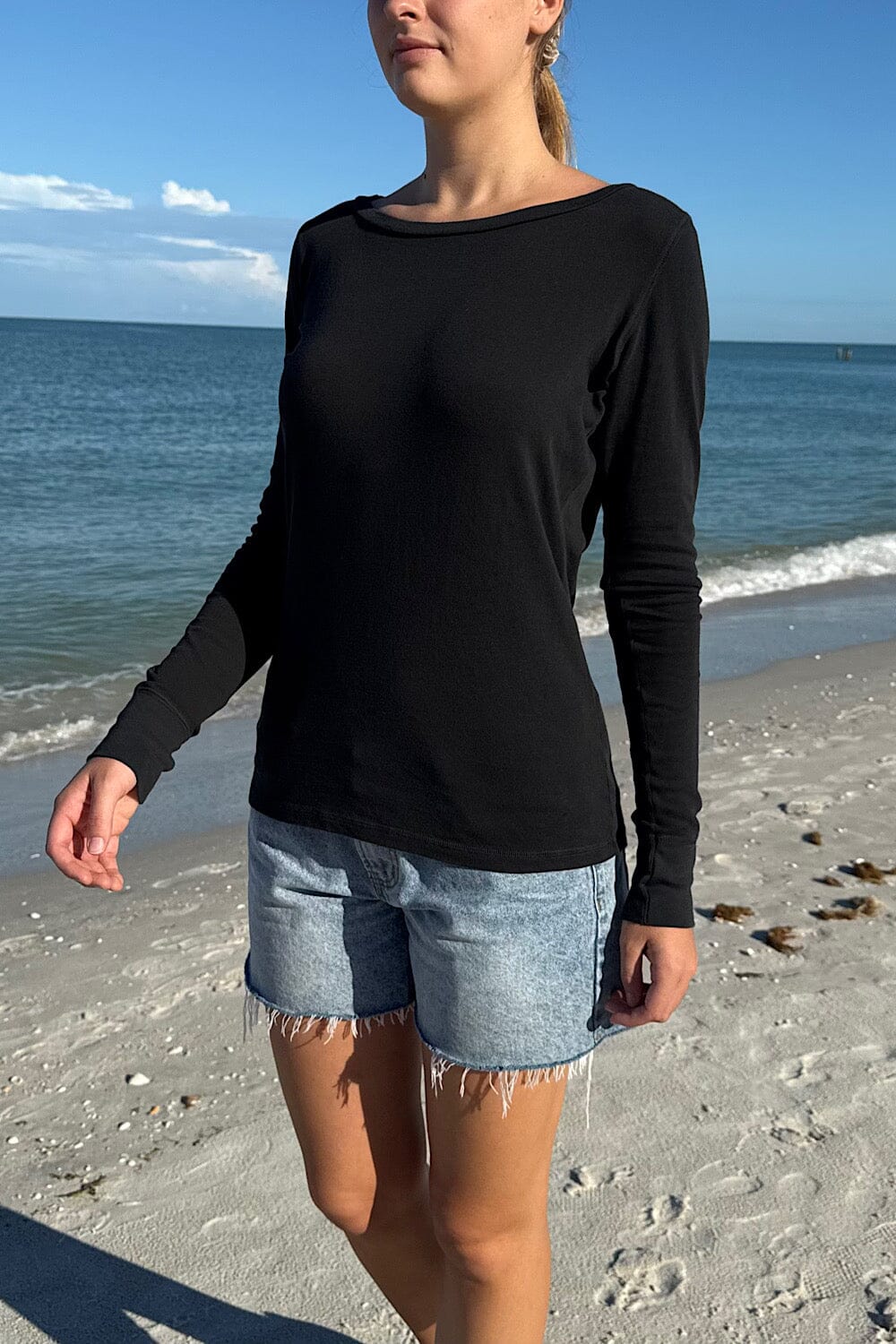 Boatneck long sleeve top.