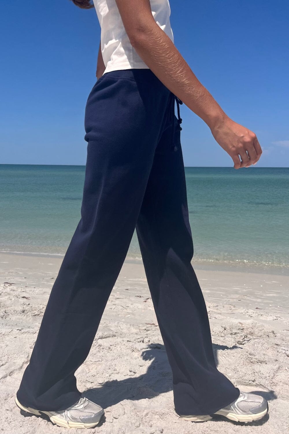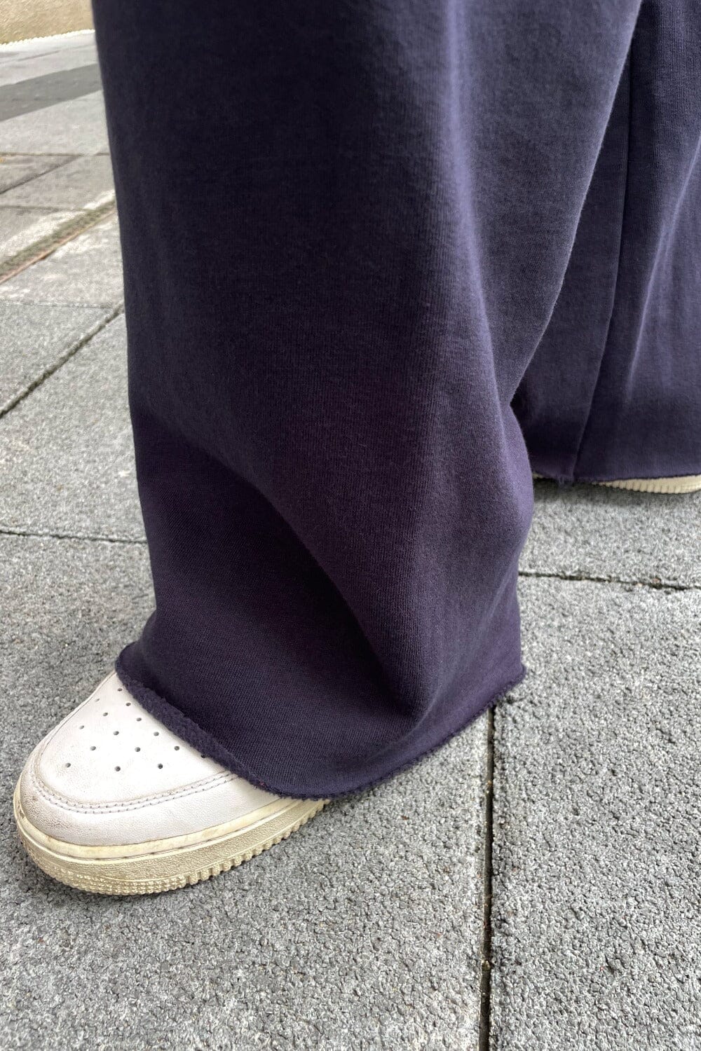 Lowrise thick and cozy cotton sweatpants with a drawstring waist, and flared legs with a raw hem.