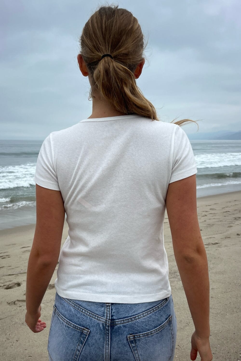 Fitted, cropped short sleeve tee with a crewneck collar.