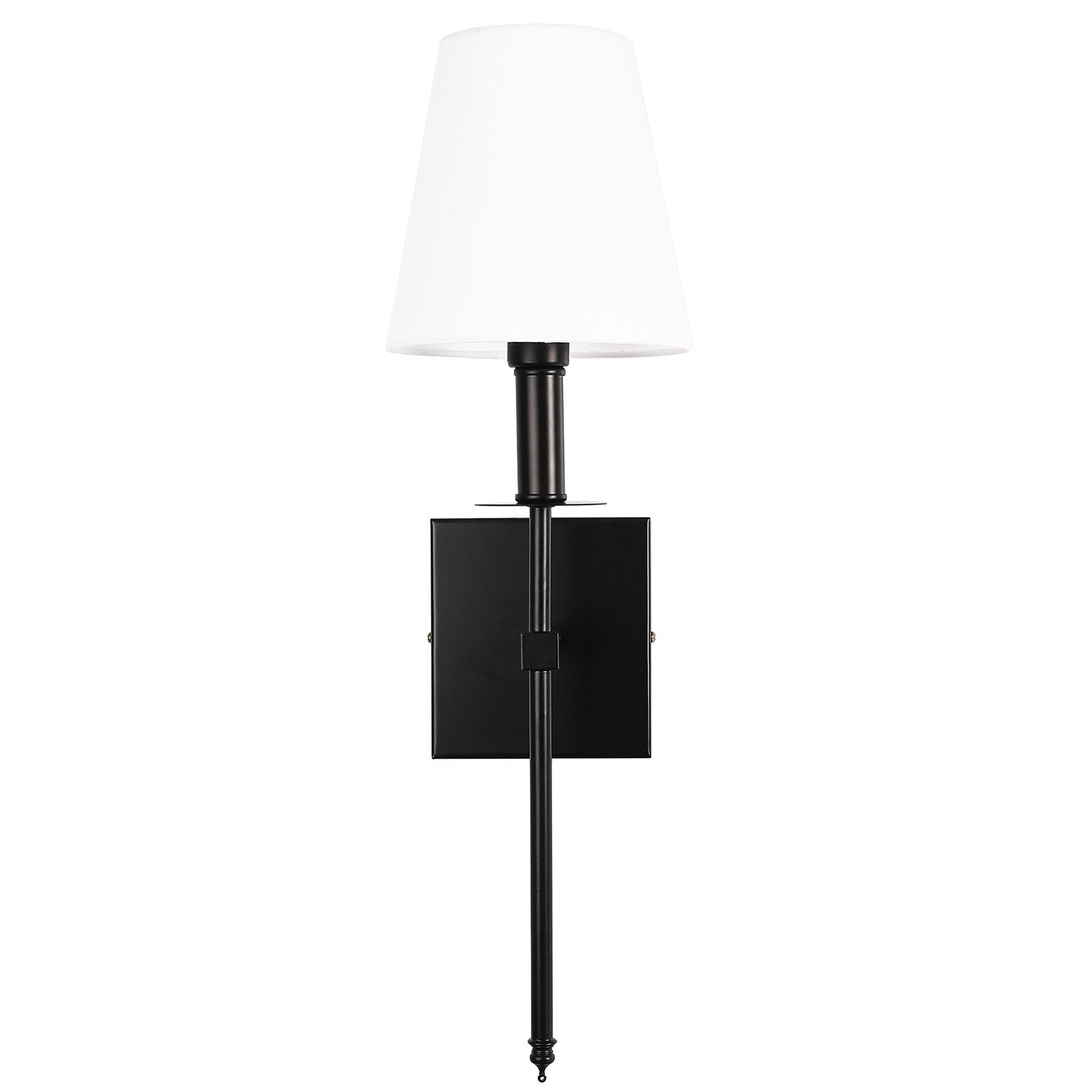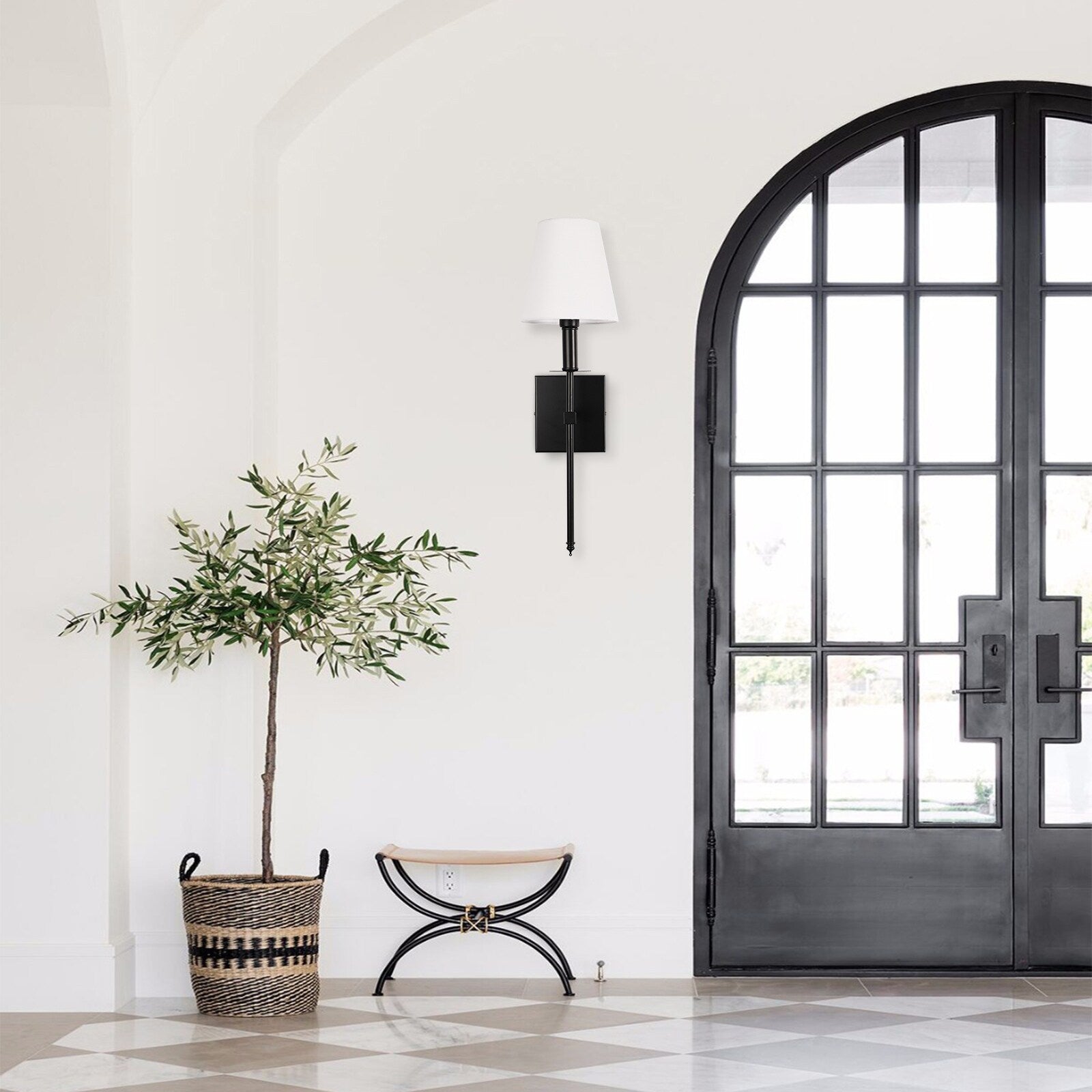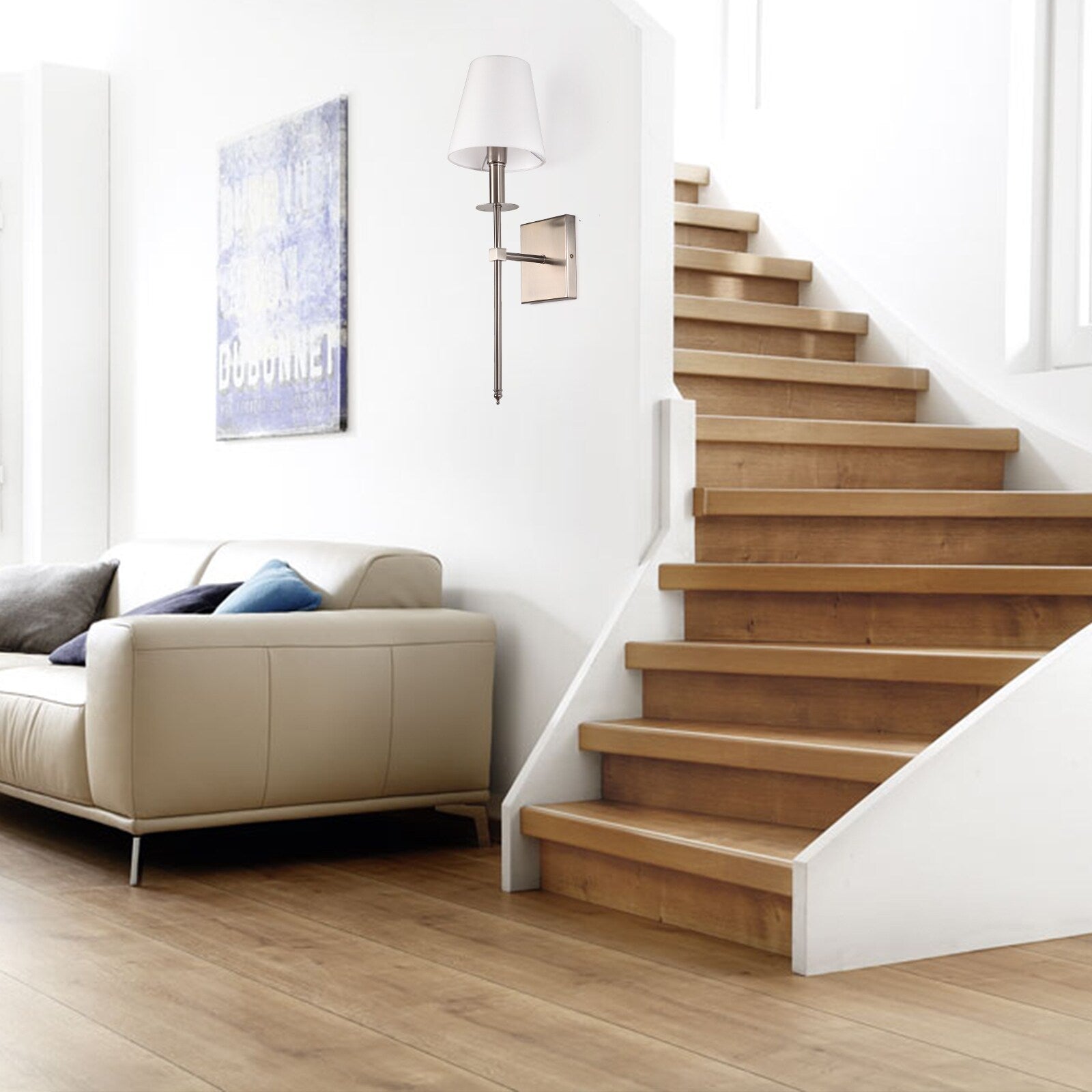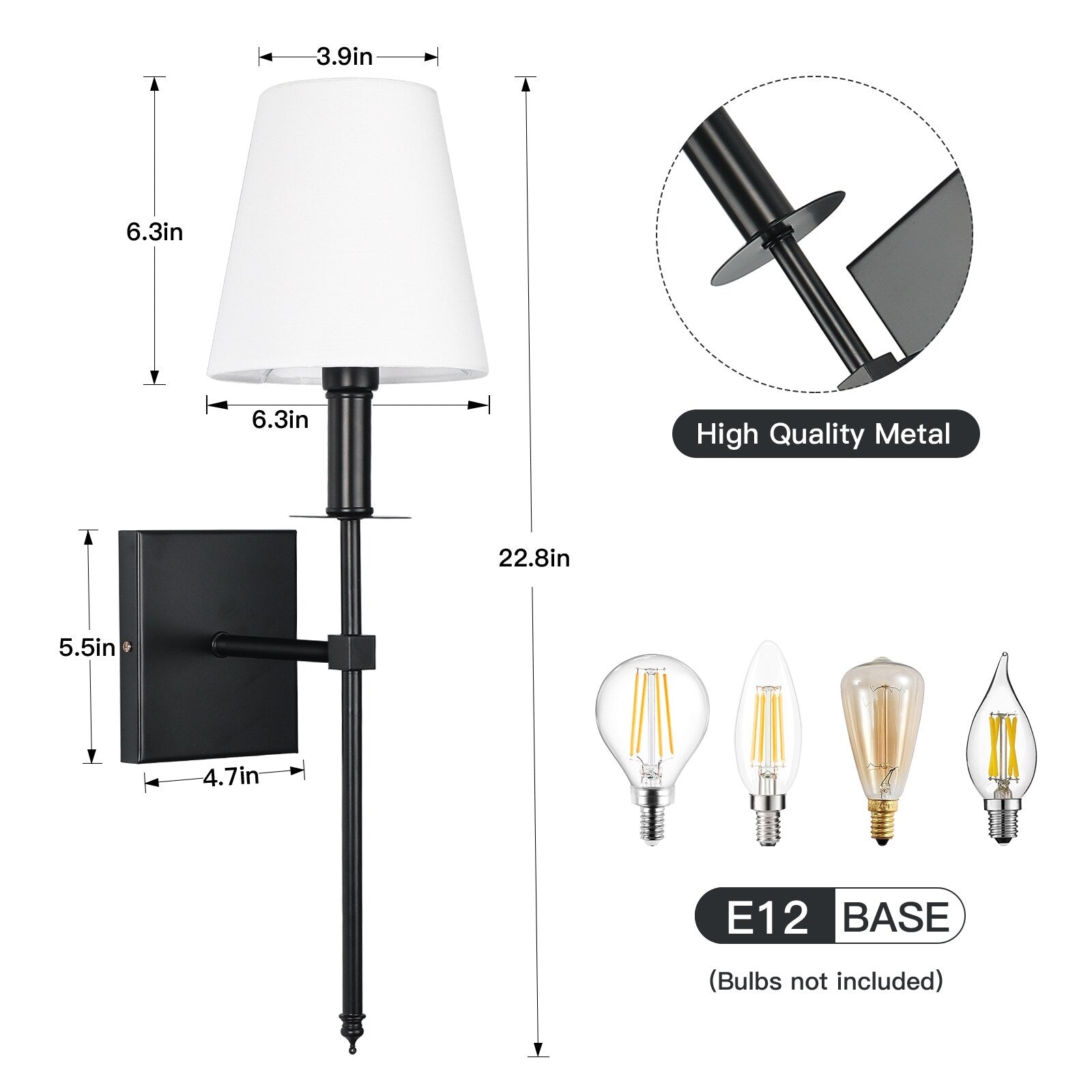 The wall sconce features elegant long column stand arm and sturdy metal base ,won't oxidize and fade. Flared white fabric shade, soften the glare, protecting your eyes and bringing you a comfortable and relaxing atmosphere.blends with many decor styles and completely transform your space.A fabric empire shade caps this sconce and diffuses the light throughout your living room ,dining room ,or powder room.You can use it as a bedside night wall lights, reading wall lamp and other multifunctional wall sconces.