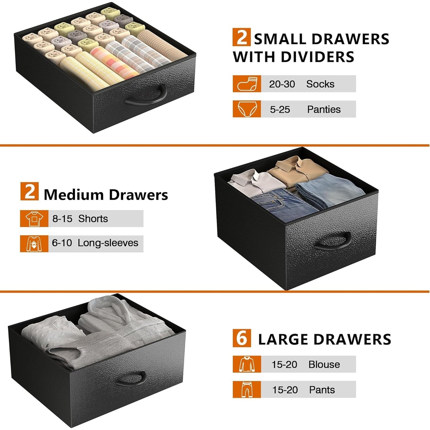 - Collapsible, portable, and breathable fabric drawers