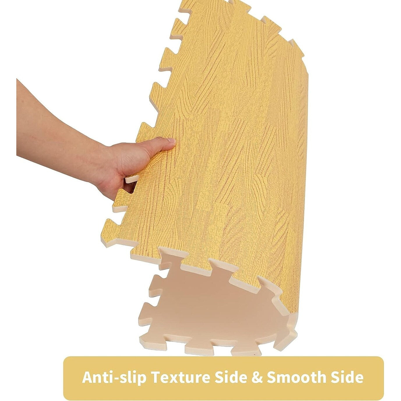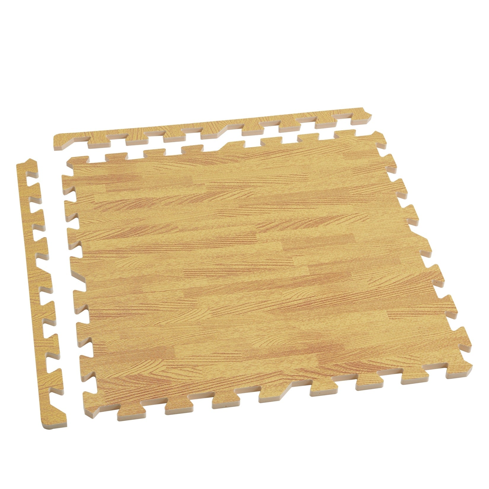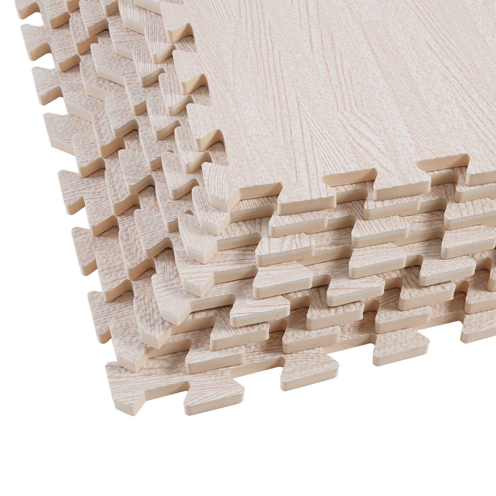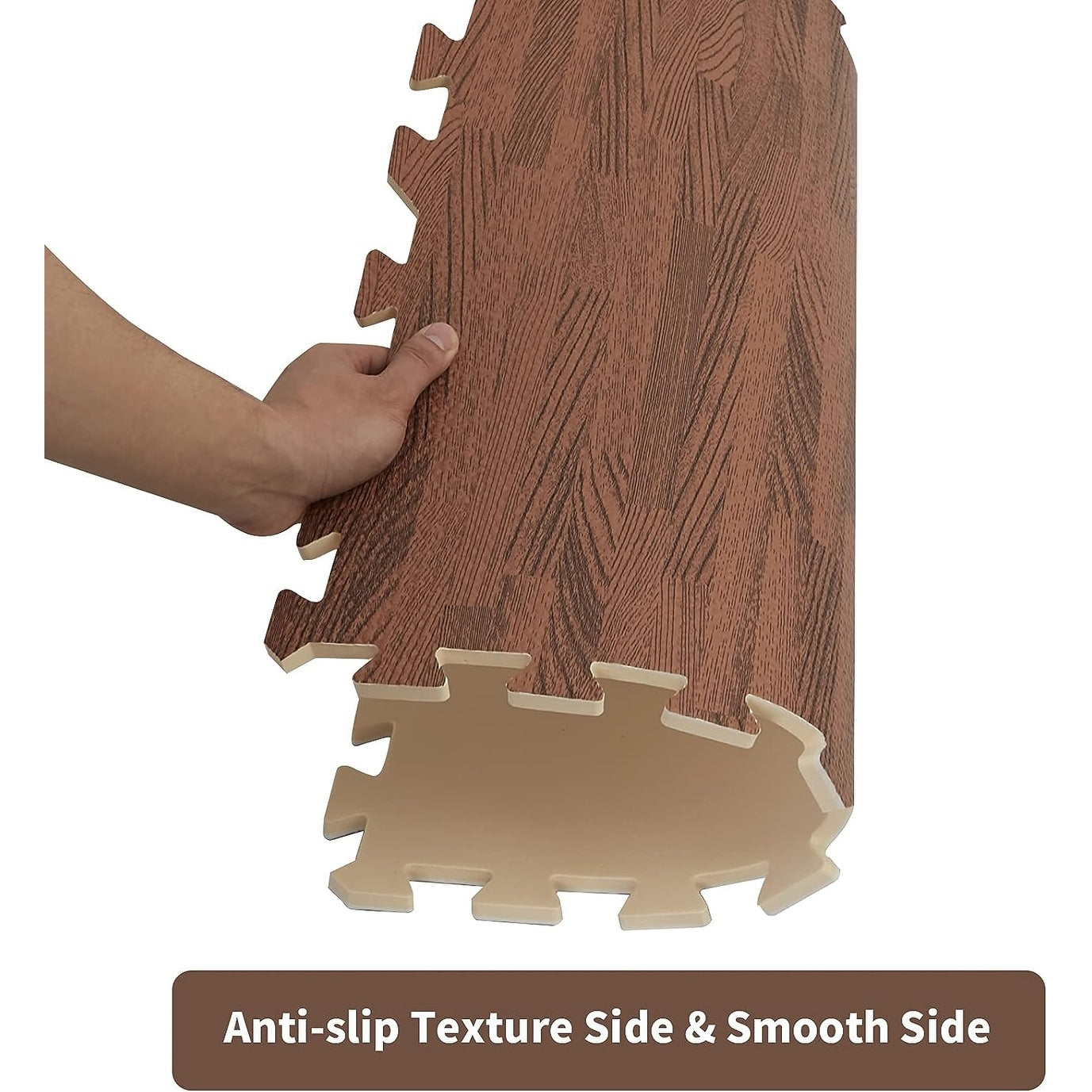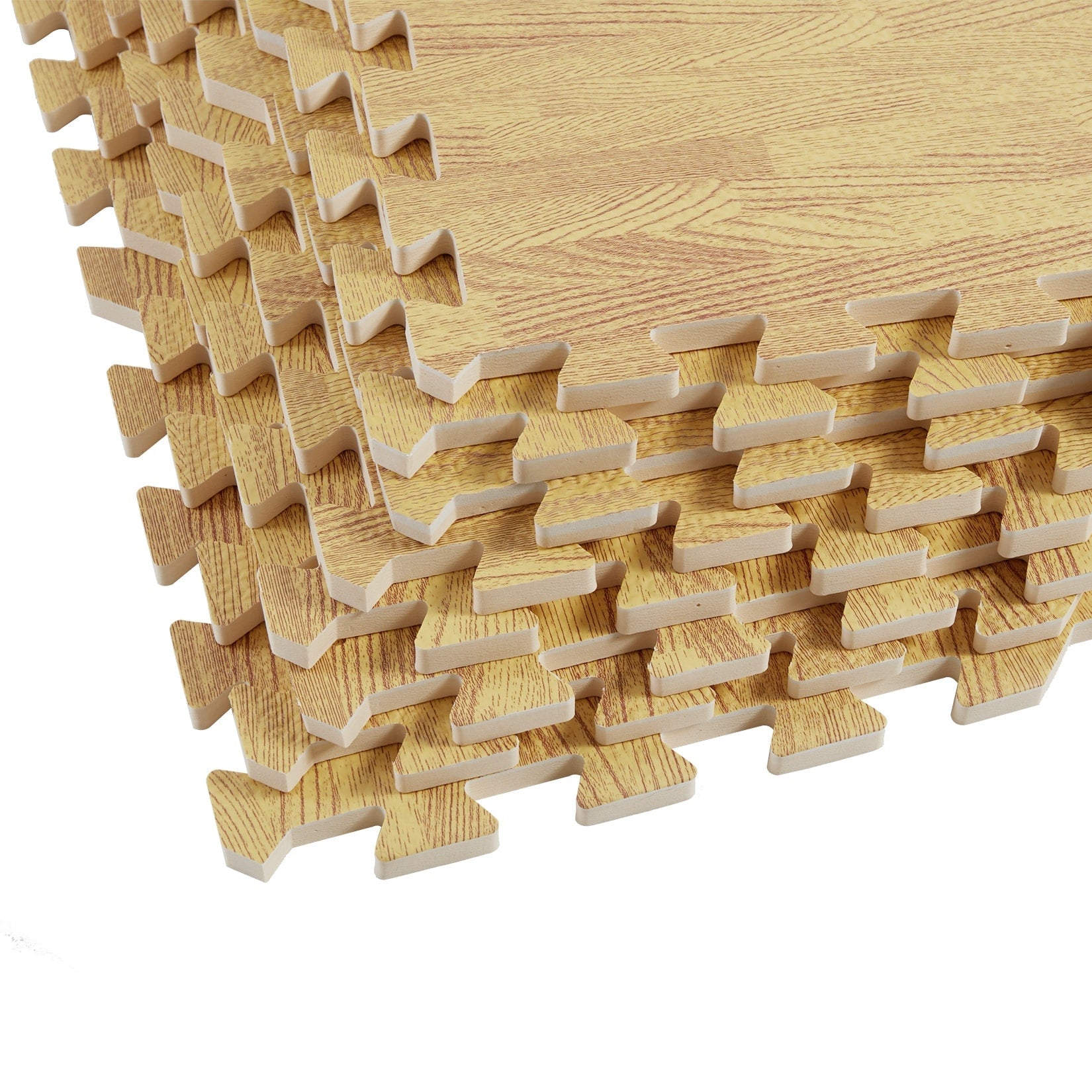 Exercise mat has dense, comfortable interlocking foam tiles that can be assembled in minutes. Excellent durability and soft feel. These foam tiles are non toxic, waterproof, impact absorbent, and protect floors. Simply clean with a wet cloth and mild detergent and they will be good as new.Good for any type of exercise.Uplift any room in your home or make your trade show booth stand out with these beautiful selections of interlocking puzzle pieces.