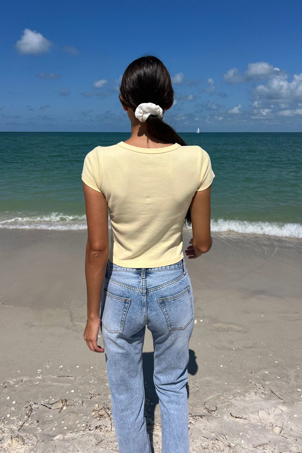 Fitted, cropped short sleeve tee with a crewneck collar.