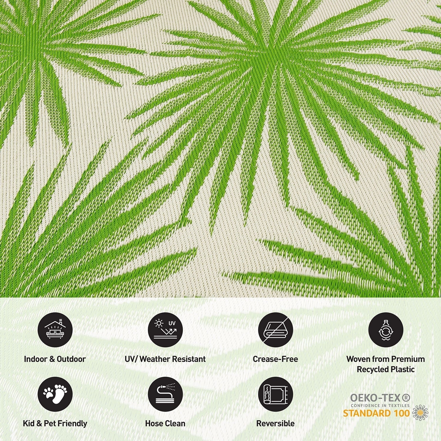 - Reversible and Waterproof Design: Experience the convenience of reversible, crease-free, waterproof rugs crafted from premium recycled plastic. Easy to care for, these stain-resistant rugs can be maintained with a simple hose rinse or a quick sweep. For indoor use, we recommend a rug pad to enhance grip.